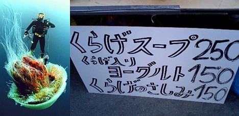 Entretanto, los japoneses están poniendo de su parte todo lo que pueden: en lugar de limitarse a quejarse de las medusas, se las están comiendo. Las medusas no son en absoluto un ingrediente habitual de la cocina japonesa, sino que son mucho más apreciadas en China. Las localidades costeras están esforzándose a tope para promocionar la medusa como un alimento novedoso.